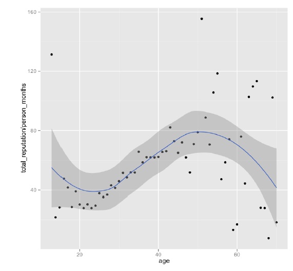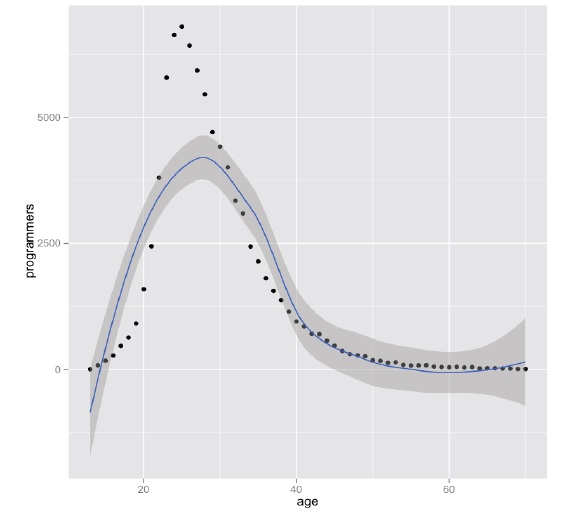 首先,我们先来看一篇论文《Is Programming Knowledge Related to Age?》(PDF链接),这篇论文是两个北卡罗莱纳州立大学计算机科学系的两个人Patrick Morrison 和 Emerson Murphy-Hill 对StackOverflow.com上的用户做了相关的数据挖掘得出来的一些数据。(我们知道StackOverflow.com上的数据是公开的,任何人都可以用来分析和统计,所以这篇论文的真实性是有的)