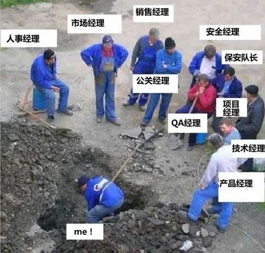 网络上一个非常经典的图片,来源不详,程序员在挖坑,其它人站在当监工