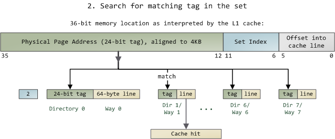 - L1 Cache 可映射 36bits 的内存地址,一共 2^36 = 64GB的内存