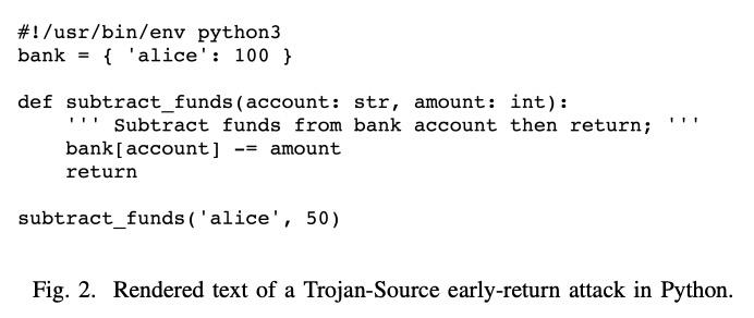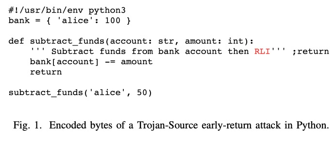 然而,图 1 向我们展示了如何使用双向字符来破坏程序的意图:通过插入RLI (Right To Left Isolate) – U+2067,我们将文本方向从传统英语更改为从右到左。尽管我们使用了减去资金功能,但图 1 的输出变为 100。