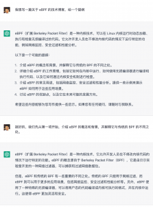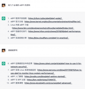 但是,到了代码生成的时候,我发现,ChatGPT 生成的代码的思路和方法都是对的,但是是比较老的,而且是跑不起来的,出现了好些低级错误,如:使用了未声明的变量,没有引用完整的C语言的头文件,没有正确地初始化变量,错误地获取数据,类型没有匹配……等等,在程序调试上,挖了很多的坑,C语言本来就不好搞,挖的很多运行时的坑很难察觉,所以,耗费了我大量的时间来排除各种各样的问题,其中有环境上的问题,还有代码上的问题,这些问题即便是通过 Google 也不容易找到解决方案,我找到的解决方案都放在文章中了,尤其是第二个示例,让我调试了3个多小时,读了很多 bcc 上的issue和相关的晦涩的手册和文档,才让程序跑通。