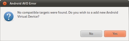 - 当目标设备弹出警告,点击Yes 以创建新的AVD。