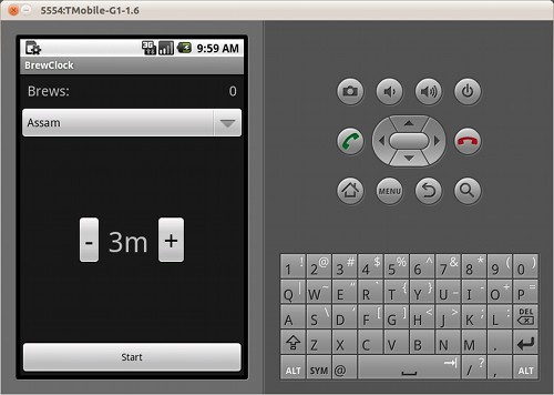 在模拟器中运行应用程序,定一个泡茶时间(这真是一个良好的借口去泡一杯你自己爱喝的茶哦)并退出应用程序,试着运行模拟器上的安装的其他应用程序确保BrewClock被终止。记住,除非这个应用程序已经不在内存中,否则Android不会终止一个Activity。