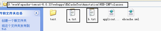 程序中使用ClassLoader的两个方法:getResourceAsStream和getResource。但是事实证明在WEB应用的场景下却得到了不同的结果。大家别误会啊,看名字他们两个方法肯定不一样,这个我知道,但是getResourceAsStream总会获取指定路径下的文件吧,示例中的参数为”/a.txt”,正确读取“/D:/work/resin-3.0.23/webapps/EhCacheTestAnnotation/WEB-INF/classes/ ”下的a.txt,可是将文件写到getResource方法的getPath返回路径的b.txt文件。两个位置的差别在项目名称(EhCacheTestAnnotation)。