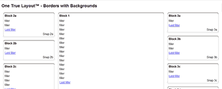6-圣杯布局(The holy grail layout) – 3栏布局会有一些问题 ,这篇文章讨论了一种三栏布局——两栏固定宽度边侧栏加上一栏变宽中栏布局,保证了页面的良好结构和清晰。