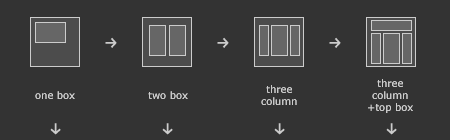 27-Thenoodleincident– CSS 从简单的单盒到3盒并增加一个顶部条,所有都是变宽。